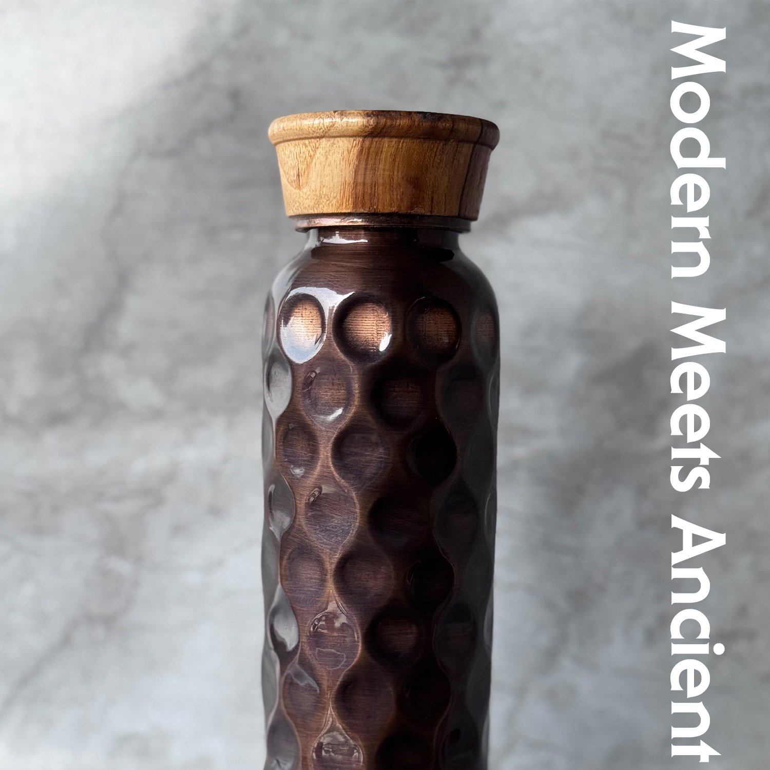 Handcrafted 1L pure copper bottle for fresh, antimicrobial water. Enjoy health benefits with our stylish, easy to clean, and perfect for bedside use bottles.